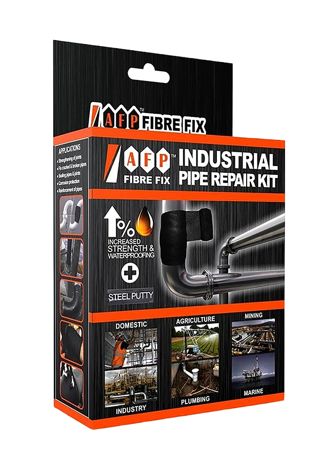 AFP FIBRE FIX INDUSTRIAL PIPE REPAIR KIT is an instant emergency pipe and general pipe repair system that is simple to use, and produces a strong and reliable repair within just minutes. AFP FIBRE FIX bandages have a woven fibreglass substrate, impregnated with a water-activated urethane resin included in every kit is a single use AFP STEEL PUTTY to plug holes if required, or to even out the repair area prior to the application of the fibreglass bandage.